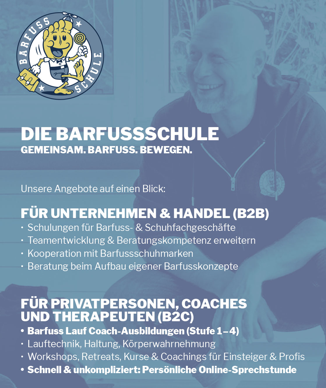 Wir zeigen Dir, wie Du wieder spürst, statt nur zu funktionieren – wie Du gehst, läufst und stehst, wie es Dein Körper wirklich braucht. Mit uns lernst Du nicht nur barfuss zu laufen, sondern auf eigenen Füssen zu stehen – innerlich wie äusserlich.